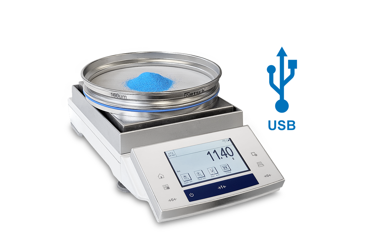 Vaša výhoda v každodennej laboratórnej práci: bezchybné, časovo úsporné váženie a následné vyhodnotenie v jednom procese, bez nutnosti prenášať sito medzi strojom a váhou.